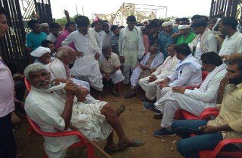 सिकंदरा धरना स्थल पर मुख्य द्वार पर बैठे गुर्जर समाज के लोग।