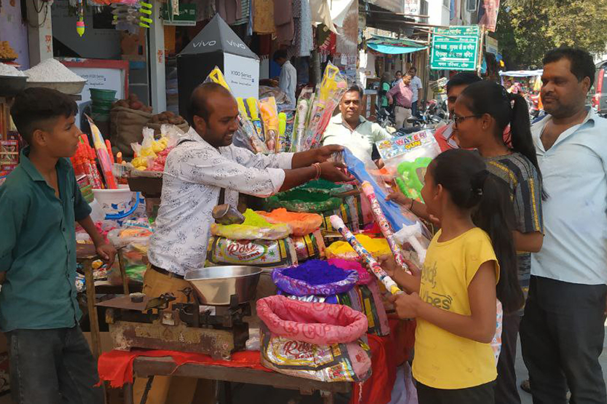 बाजार में छाई होली की रंगत, रंग गुलाल से सजी दुकानें
