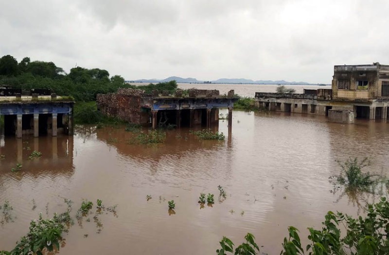 बीसलपुर के जलग्रहण क्षेत्र में आए नेगडिय़ा गांव में डूबे मकान, जलमग्न हुआ ब्रिटिशकालीन ऑगेलिव ब्रिज