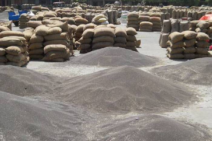 टोंक कृषि मण्डी में पड़ी बोरियां व लगे जिंस के ढेर।