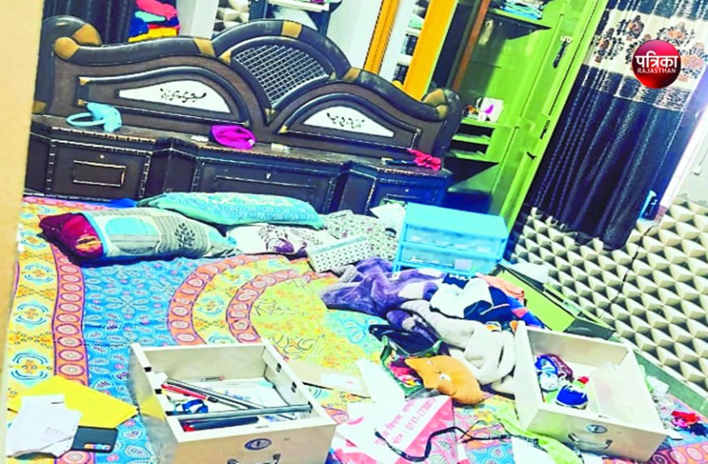 वारदात शिक्षिका व गायक संतरा आसावरा के सूने मकान में हुई। चोरी का पता सुबह लगा, जब मकान के गेट खुले हुए नजर आए तो लोगों ने देखा कि शिक्षिका तो बाहर गई हुई और मकान का गेट कैसे खुले हुए हैं। अंदर गेट का ताला भी टूटा हुआ नजर आया और अंदर कमरे सामान बिखरा था।