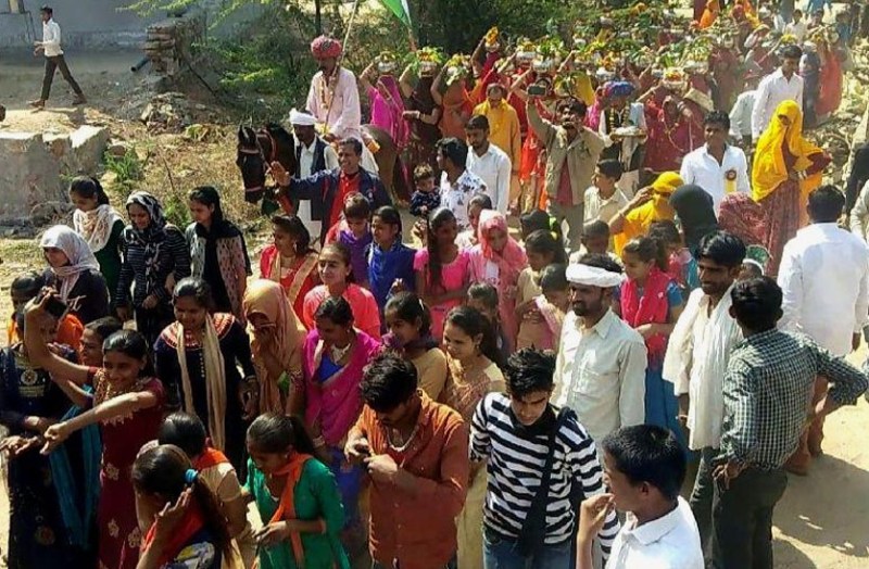 कलशयात्रा में सैंकडों ग्रामीण बैण्डबाजों के साथ नाचते गाते विद्यालय पहुंचे। कलशयात्रा में ध्वजारोहण गिर्राज हरसाणा ने किया और प्रधान कलश का सौभाग्य भंवरलाल हरसाणा को मिला इसी प्रकार प्रधान यज्ञकर्ता के रूप में जयकिशन चौहान और आमोद शर्मा जयपुर ने हवनकुंड में आहुतियां दी। सरपंच सांवरलाल मीणा ने मां सरस्वती की मूर्ति को वैदिक आचार्य रमाकांत गौत्तम जयपुर के सानिध्य में मंत्रोच्चार के साथ स्थापित किया गया।