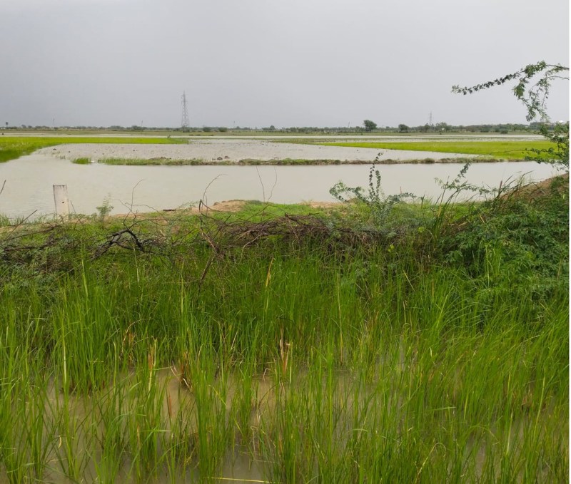 टोडारायसिंह बीसलपुर जयपुर मैन सर्विस लाइन में रिसाव से तलैया बने खेत।