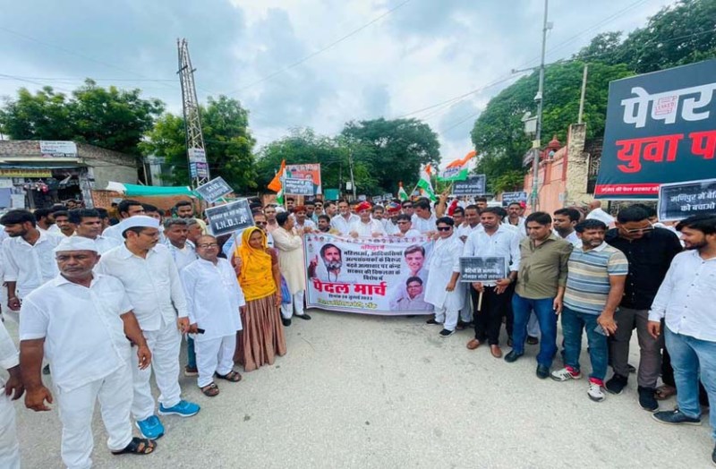 टोंक. मणिपुर में चल रही हिंसा और महिला अत्याचार को लेकर कांग्रेस ने बुधवार को शहर में पैदल मार्च निकाला। उन्होंने राष्ट्रपति के नाम जिला कलक्टर को ज्ञापन सौंपा। इसमें मणिपुर में महिलाओं, आदिवासियों एवं अल्पसंख्यकों पर हो रहे अत्याचार को रोकने के विफल केन्द्र की भाजपा के खिलाफ कार्रवाई की मांग की।
