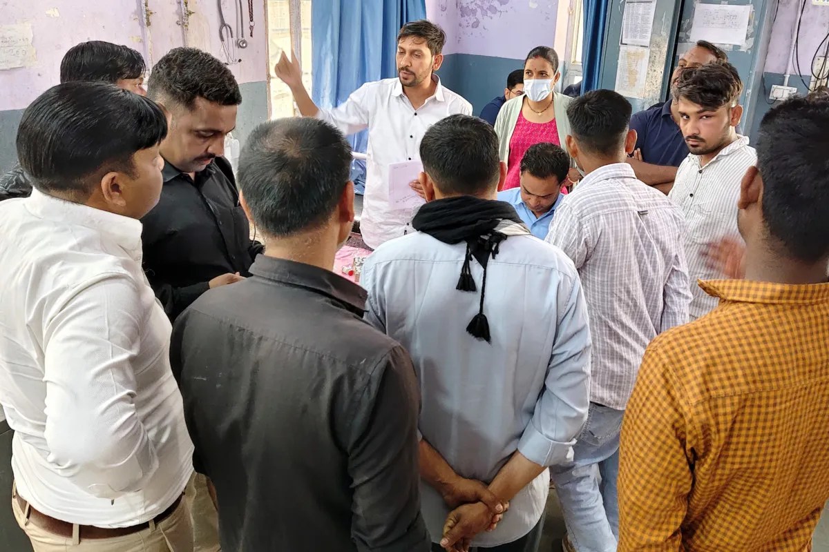 अस्पताल के आपातकालीन कक्ष में खड़े जख्मी व लोग। फोटो- पत्रिका
