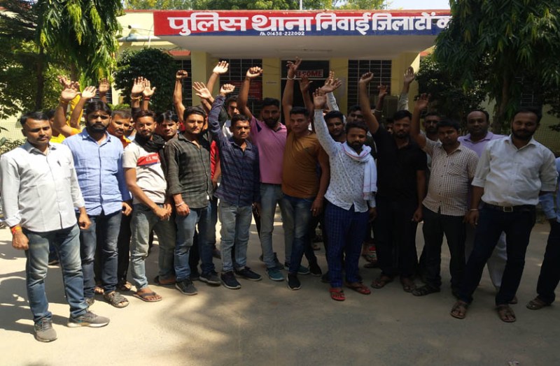 पुलिस मौके पर पहुंच कर लडक़े थाने लेकर आ गई। महिला ने थाने पहुंच कर फ रार हुए दोनों मनचलों को गिरफ्तार की मांग की। इस घटना की जानकारी मिलते ही बजरंग दल के कई कार्यकर्ता थाने पहुंच गए और थानाधिकारी नरेन्द्र मीणा को फ रार हुए आरोपियों को 24 घंटे के भीतर गिरफ्तार करने की मांग और गिरफ्तार नहीं करने पर निवाई बंदकर धरना प्रदर्शन की चेतावनी दी।