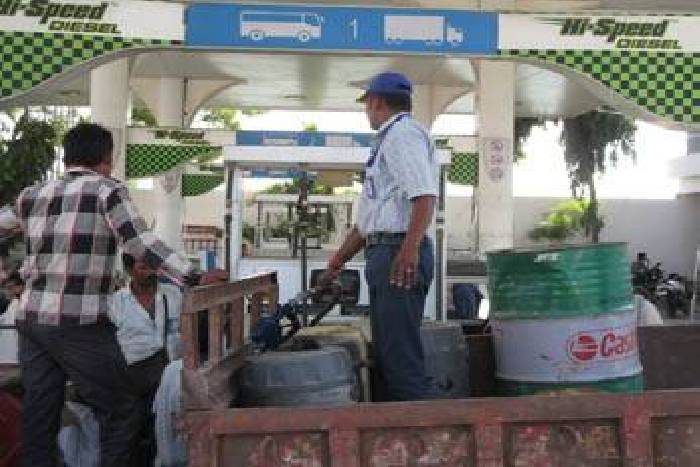 डीजल लेने के लिए गुरुवार को टोंक में एक पेट्रोल पम्प पर ट्रैक्टर-ट्रॉली में लाए गए ड्रम।