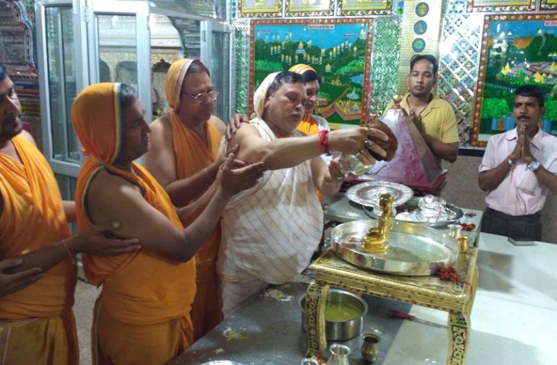 टोंक के तेरापंथी मंदिर में भगवान की शांतिधारा करते श्रावक।