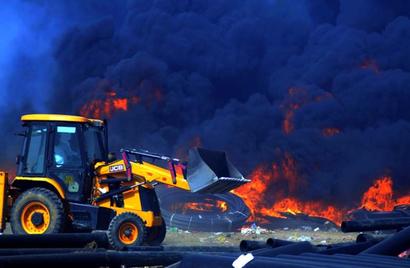 सोरण गांव स्थित नगर परिषद के डम्पिंग यार्ड में लगी आग।