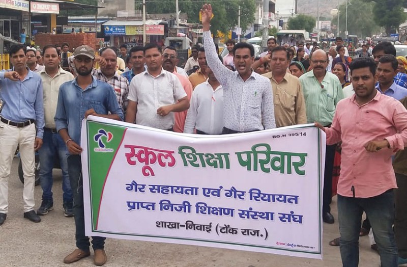 निवाई ईओ के खिलाफ निजी शिक्षण संस्था संचालकों ने निकाली रैली, यूडीएच टैक्स में लगाया भेदभाव का आरोप