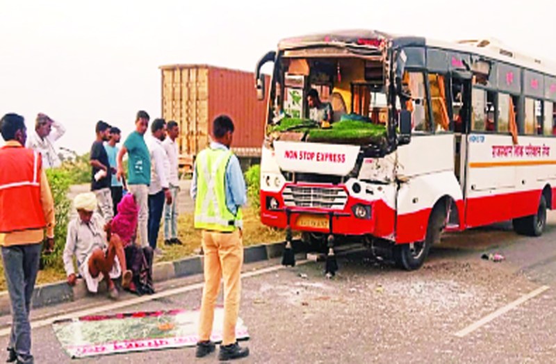 कंटेनर से भिड़ी लोक परिवहन की बस, छह यात्री हुए घायल