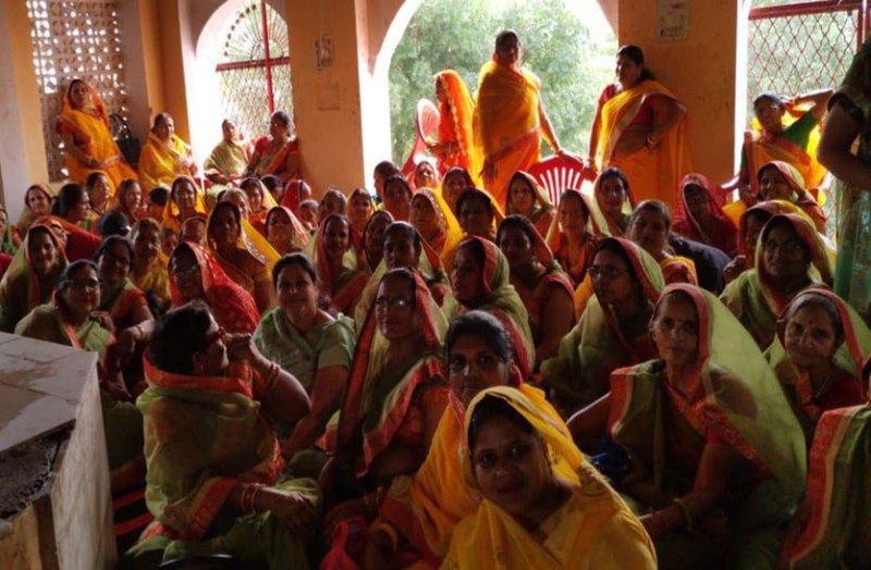 निवाई अन्नकूट महोत्सव के दौरान बालाजी मंदिर में संकीर्तन करती महिलाएं।