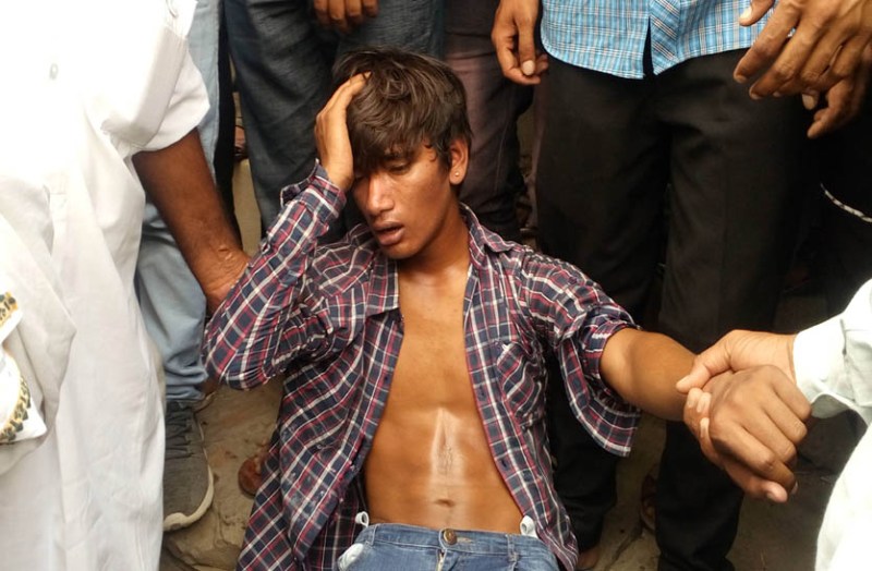 बैंक के बाहर से दम्पती पर मैला फेंक रुपयों से भरा बैंग छीनकर भाग रहे युवक को पकड़ भीड़ ने की जमकर धुनाई