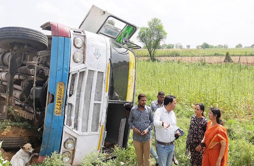 शनिवार दोपहर में टोडारायसिंह से टोंक जा रही टोंक डिपो की रोडवेज Tonk Depot Roadways की बस नागौरियान ढाणी के पास तेज गति होने के कारण घुमाव पर अनियंत्रित Uncontrolled on rotation होकर सडक़ किनारे गड्ढे में पलट गई।