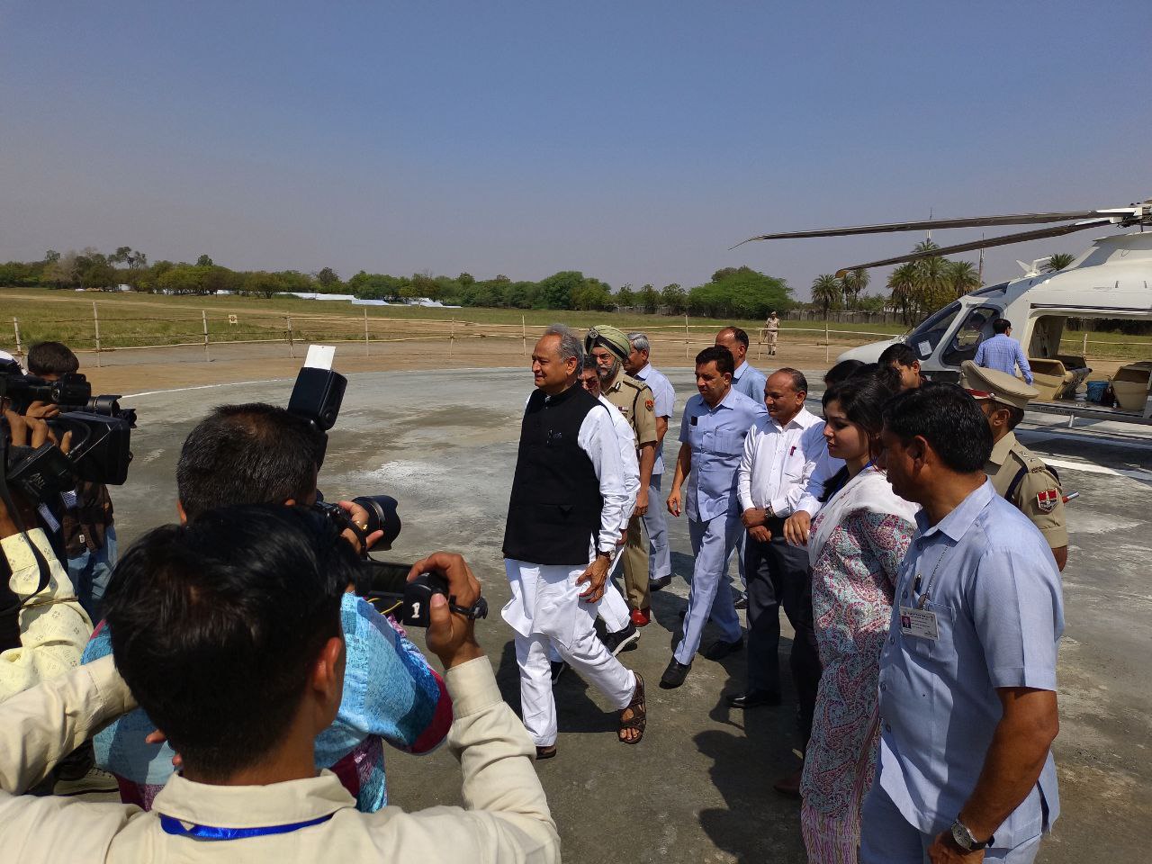 इससे पहले वे सुबह करीब 11 हेलीकॉप्टर से टोंक जिले के निवाई के निकट वनस्थली विद्यापीठ पहुंचे। वहां पर निवाई विधायक प्रशांत बैरवा ने फूलों का गुलदस्ता भेंटकर स्वागत किया। विधायक ने बताया कि निवाई-पीपलू विधानसभा क्षेत्र में मुख्यमंत्री द्वारा बजट में शिक्षा, सड़क, चिकित्सा, औधोगिक क्षेत्र सहित विभिन्न घोषणाएं करने पर उनका स्वागत कर आभार जताया गया। क्षेत्र की अन्य आवश्यकताओं के लिए भी मुख्यमंत्री से मांगें रखी।