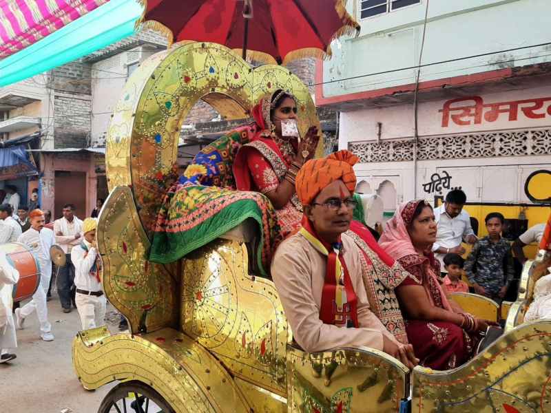 अलीगढ़. घोड़े पर सवार जैन धर्म का ध्वज लिए युवा, गंूजती भजनों की स्वर लहरियां, श्वेत वस्त्र में युवा एवं चुनरी की साड़ी में महिलाएं, बैनर व स्वागत द्वारों से अटा अलीगढ़ का बाजार आधा किलोमीटर जुलूस में कतार बद्ध महिलाएं व पुरुष एवं बग्घी में सवार दीक्षार्थी अदिति(पम्मी)। अवसर का दीक्षार्थी अदिति का गुरुवार को वरघोड़ा एवं अभिनंदन समारोह का।कस्बे में गुरुवार को दीक्षार्थी अदिति का स्वं से साढ़े आठ बजे वरघोड़ा शुरू हुआ। इस दौरान बग्घी में अदिति के साथ उनकी मां निशा जैन एवं पिता महेन्द्र बजाज व भाई आकांश सवार रहे। वरघोड़ा लालचौक होते हुए मुख्य बाजार, सदर बाजार, बालाकिला चौराहा, अस्पताल रोड, पवनसुत मार्ग, हायर सेकण्डरी स्कूल होते हुए वापस हलकारों का मोहल्ला, बालाकिला चौराहा, मुख्य बाजार, लालचौक सब्जी मण्ड़ी चोराहा, बसस्टेण्ड़ होते हुए सवाईमाधोपुर रोड स्थित नवमीत मैरिज गार्डन में जाकर समाप्त हुआ। जुलूस के दौरान कस्बा जैन धर्म के जयघोष से गंूजता रहा। इस दौरान कस्बे के बाजार पूर्ण रूप से बंद रहे।इससे पहले लाल चौक पर दीक्षार्थी को लड्डूओं से तौला गया। दीक्षार्थी द्वारा श्रद्धालुओं में प्रभावना वितरित की गई।इस दौरान नवमीत मैरिज गार्डन में दीक्षार्थी अदिति का अभिनन्दन समारोह आयोजित हुआ, जिससे दीक्षार्थी अदिति का एवं उनके परिवार का स्वागत किया गया। उल्लेखनीय है कि ९ दिसम्बर को पीपाड़ में दीक्षार्थी अदिति को दीक्षा दी जाएगी। कार्यक्रम में प्रदेश के कई जिलों श्रद्धालुओं ने शिरकत की।