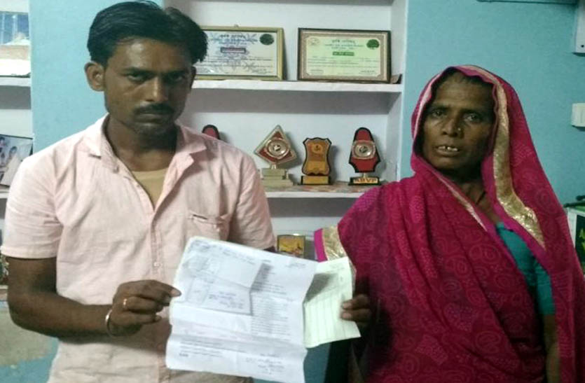 दस्तावेज दिखाता पीडि़त मुकेश व उसकी मां पूनिया देवी।