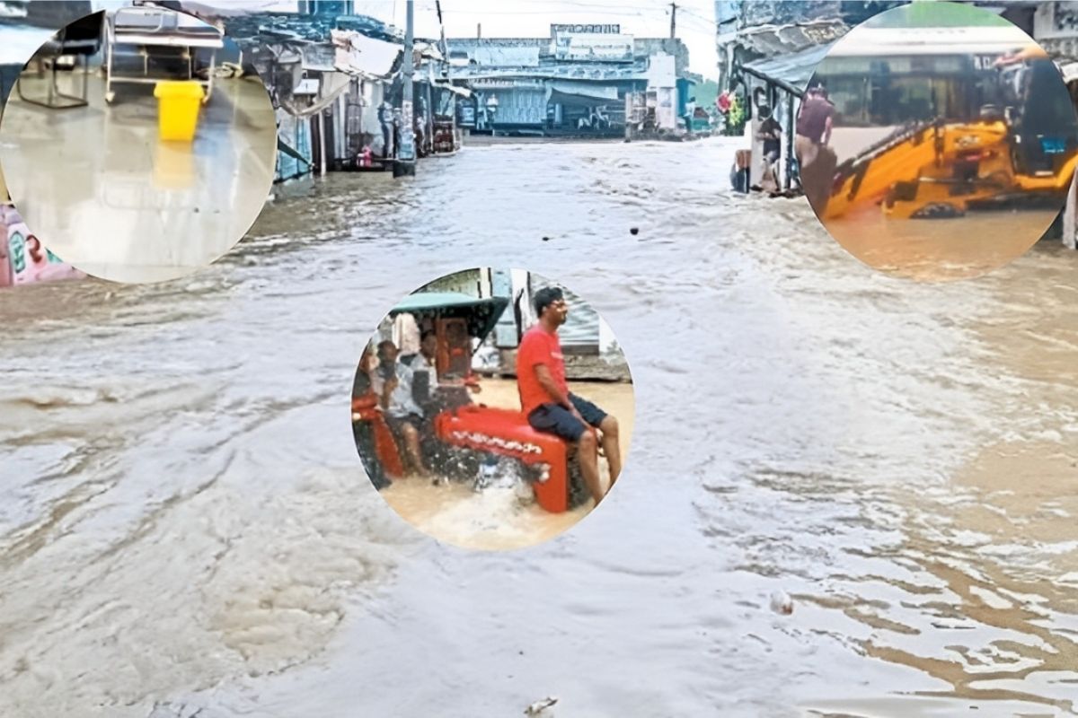 कलेक्टर, एसडीएम, ईओ और बीडीओ सहित अन्य अधिकारियों के साथ बाईपास के समीप स्थित चौधरी कॉलोनी, जगदंबा कॉलोनी, सुभाष कॉलोनी, अस्सी फीट सहित जलभराव के सभी स्थानों का निरीक्षण किया। मंगलवार रात से बुधवार दोपहर दो बजे तक बारिश से शहर की कुछ कॉलोनियों जलमग्न हो गई। ढाणीजुगलपुरा स्थित श्याम विहार कॉलोनी द्वितीय में घरों में पानी भर गया। आलियाबाद से चैनपुरा तक कमर तक पानी भर जाने से ट्रक, लोक परिवहन की बस सहित अन्य वाहन फंस गए।
