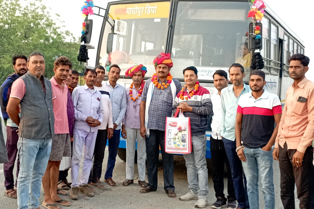Rajasthan Roadways Bus To Govardhan: देई धाम से गोवर्धन धाम के लिए नई रोड़वेज बस शुरू हुई है। बस के बायपास बस स्टैण्ड पर पहुंचने पर चालक जब्बार सिंह तथा परिचालक अशोक कुमार गुर्जर का ग्रामीणों ने माला, दुपट्टा पहनाकर व साफा बंधवाकर स्वागत किया। पूजा-अर्चना कर बस को रवाना किया। बस के चलने से गोवर्धन जाने वालों को फायदा मिलेगा। इस अवसर पर चारभुजा नाथ विकास समिति अध्यक्ष शेरसिंह सोलंकी, अशोक कुमार धाबाई, बुद्धिप्रकाश धाकड़, रामदेव मीणा, जीएसएस अध्यक्ष प्रधान गुर्जर आदि ग्रामीण मौजूद थे।