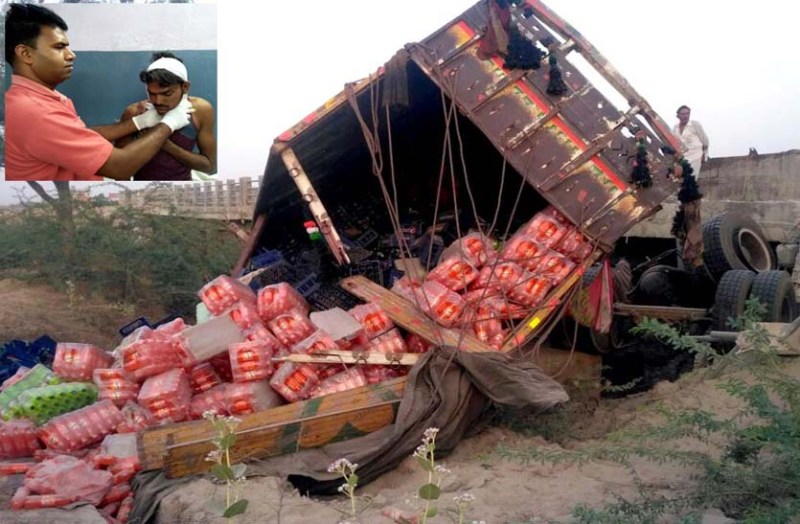 ट्रक पलटने के बाद बिखरी कर्टन व बोतलों को लेने के लिए के लिए राहगीरों व ग्रामीणों की भीड़ लग गई। इस दौरान पहले तो हाइवे पेट्रोलिंग के कार्मिकों ने बिखरे माल की सुरक्षा की। बाद में पुलिस आने के बाद घायलों को लेकर अस्पताल पहुंचे। हालांकि राहगीर व ग्रामीण सख्ती के चलते ठण्डा पेय की बोतले व कर्टन नहीं ले जा पाए।