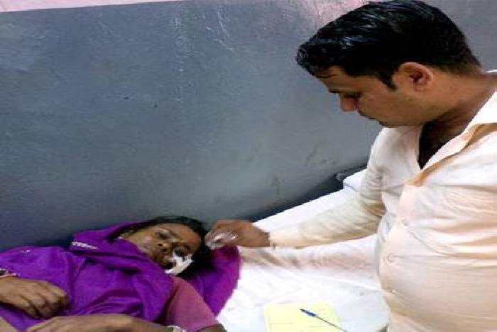 बंथली क्षेत्र के दूनी अस्पताल में संथली मोड़ पर कार की टक्कर से घायल हुई बाइक सवार महिला का उपचार करते चिकित्साकर्मी।