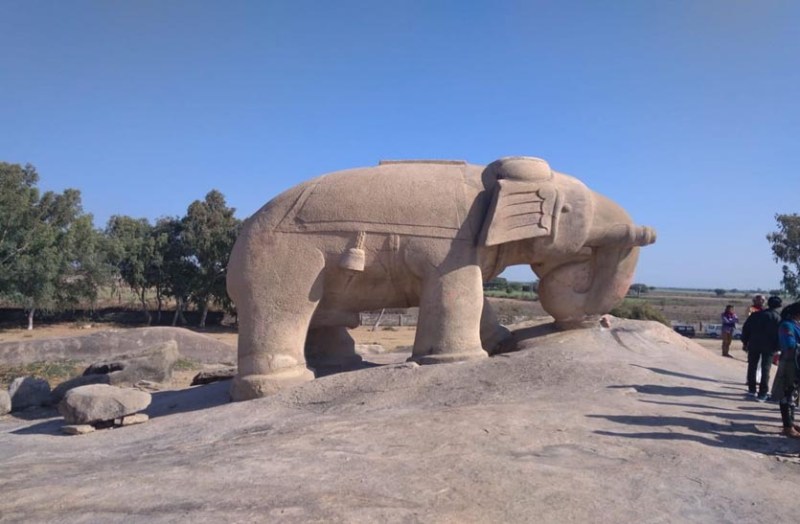 यहां तत्कालिन शिल्पियों Immediate craftsmen ने पहाड़ी को तराश कर विशालकाय हाथी खड़ी मुद्रा Giant elephant standing pose में निर्मित किया था, जो आज भी दूर से सजीव प्रतीत होता है।
