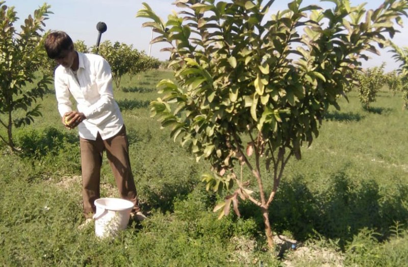 किसान ने खेती में नवाचार करते हुए बदलाव किया और तालाब के समीप अपने सात बीघा खेत में फलदार पौधे लगा दिए, जो अब फल भी देने लगे हैं। अमरूद का बगीचाा लगाने में किसान राजेश मीणा की पत्नी बबली देवी ने भी सहयोग किया। अब राजेश स्वयं ही बाजार में फलों को बेचकर मुनाफा कमा रहा है। वह इस कार्य से अन्य किसानों को भी प्रेरित कर रहा हैै। उसने सात बीघा के खेत में 750 अमरूद पौधे लगाए थेे।