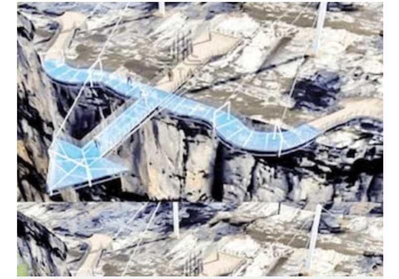 पुल का आकार धनुष-बाण की तरह है। यह पुल करीब डेढ़ साल में बनकर तैयार हुआ है। खाई की ओर बाण की लंबाई 25 मीटर है जबकि दोनों पिलर के बीच धनुष की चौड़ाई 35 मीटर है।पुल की भार क्षमता प्रति वर्ग मीटर में 500 किलोग्राम रखी गई है। वन विभाग और पर्यटन विभाग की ओर से कराए जा रहे इस ग्लास ब्रिज की कुल लागत 3.7 करोड़ रुपये है। पुल का निर्माण बिहार के राजगीर में बने स्काई वॉक ग्लास ब्रिज की तर्ज पर किया गया है।