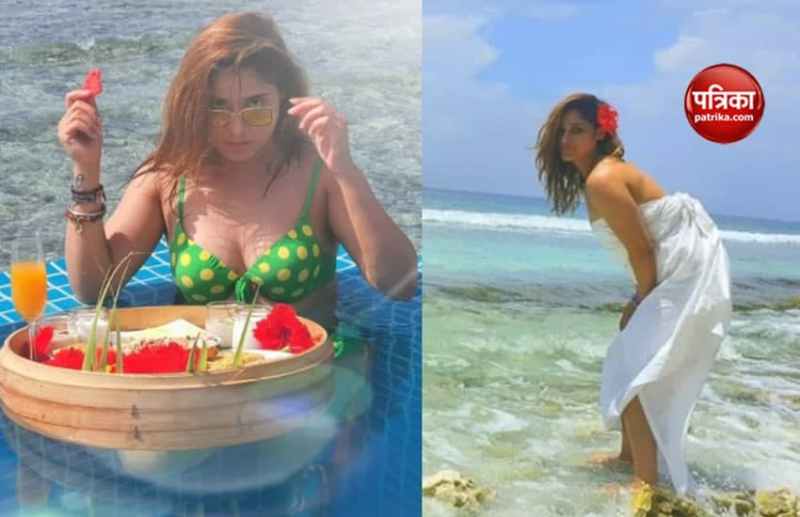 आरती सिंह ने अपनी तस्वीरें इंस्टाग्राम अकाउंट से शेयर की हैं। जिसमें वह समद्र किनारे स्विमिंग पूल में फ्लोटिंग ब्रेकफास्ट करती नजर आ रही हैं। इस दौरान आरती ने ग्रीन कलर की बिकिनी पहनी हुई है, जिसमें वह काफी हॉट लग रही हैं। एक्ट्रेस ने ब्रेकफास्ट करते हुए कई जबरदस्त पोज़ दिए हैं। सोशल मीडिया पर उनकी तस्वीरें जमकर वायरल हो रही हैं। उनके पोस्ट पर अबतर लगभग पचास हजार लाइक्स आ चुके हैं। वहीं, फैंस उनकी हॉटनेस की जमकर तारीफ कर रहे हैं।