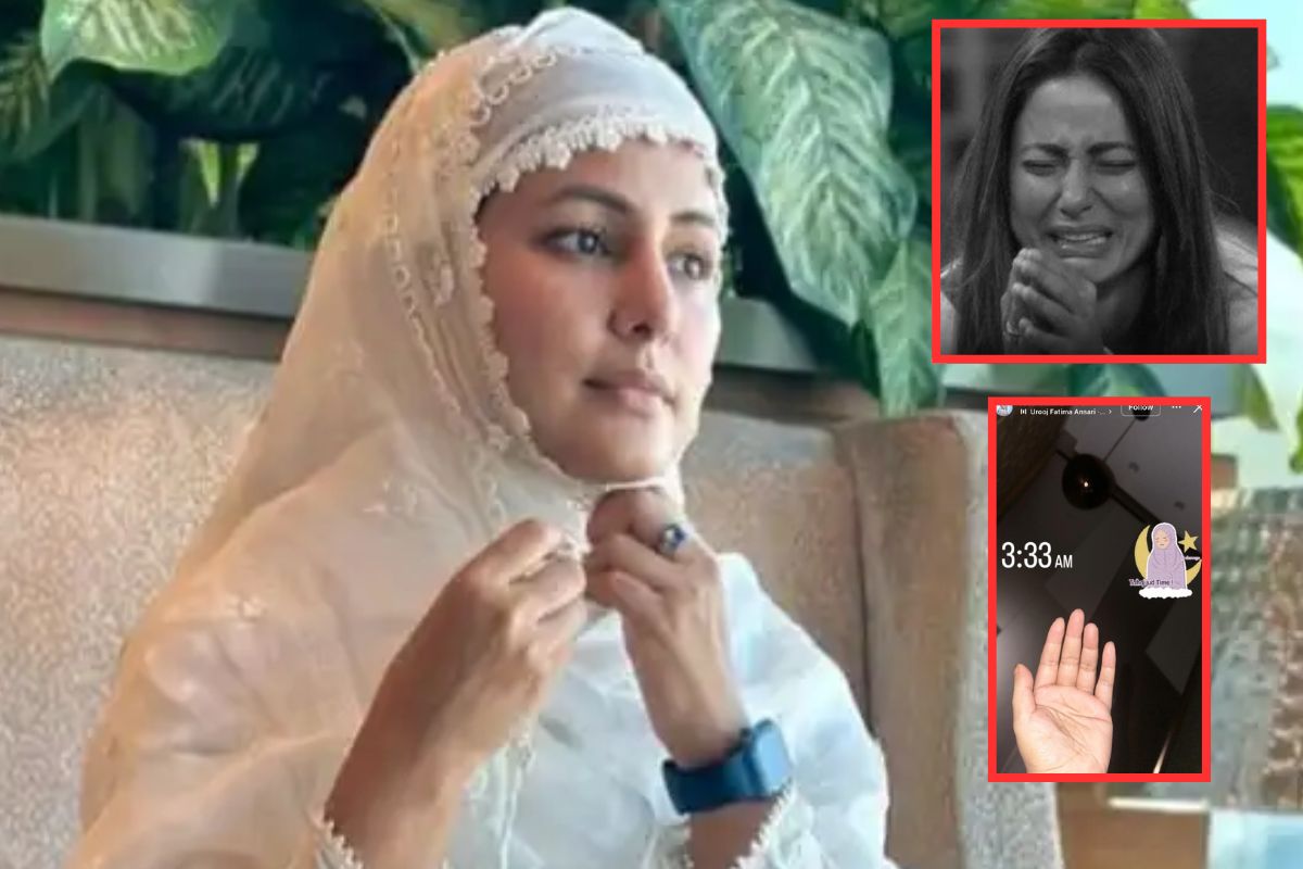 हिना खान एक मुस्लिम हैं, जिस वजह से उन्होंने बीमारी के बावजूद रोजे रखे हुए हैं। शायद यही वो वजह है जो उन्हें हिम्मत दे रही है। हिना खान की हालत वैसे तो ठीक है,लेकिन कैंसर एक ऐसी बीमारी है जो इंसान को अंदर से खत्म कर देते हैं। अब हिना के फैंस उन्हें हिम्मत दे रहे हैं। वहीं, हिना खान ने एक पोस्ट किया है इसमें वह अल्लाह के आगे हाथ जोड़ रही हैं। उन्होंने रात करीब 3.33 पर पोस्ट शेयर किया। इसमें उन्होंने बताया कि वह रोजे का समय शुरू हो गया है। हिना ने जो फोटो डाली उसमें उनका हाथ नजर आ रहा है और एक इमोजी है जिसमें एक लड़की बुर्का पहने बैठी है वह काफी उदास नजर आ रही है और उसके पीछे चांद और सितारे दोनों दिख रहे हैं। उसमें लिखा है। “तहज्जुद का समय।” इस पोस्ट के बाद हिना के फैंस डर रहे हैं और उनसे पूछ रहे हैं कि क्या सब ठीक है? हिना अक्सर खुद को बेहद हिम्मत वाली और बहादुर दिखाती हैं, लेकिन असल में वह एक ऐसी बीमारी से जूझ रही हैं जिसका इलाज बेहद मुश्किल है। इसी पर अब उनके फैंस कमेंट कर रहे हैं।