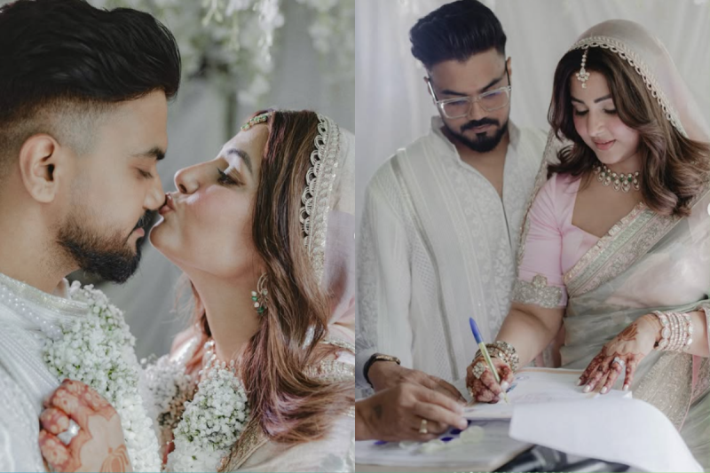 सोशल मीडिया प्लेटफॉर्म इंस्टाग्राम पर हिना खान ने अपनी और रॉकी जायसवाल की जोड़े वाली तस्वीरें शेयर की। उन्होंने पोस्ट में लिखा, “दो अलग-अलग दुनियाओं से, हमने प्यार का एक ब्रह्मांड बनाया। हमारे मतभेद मिट गए, हमारे दिल एक हो गए, जिससे एक ऐसा बंधन बना जो जीवन भर रहेगा। हम अपना घर, अपनी रोशनी, अपनी उम्मीद हैं और साथ मिलकर हम सभी बाधाओं को पार करते हैं। आज, हमारा मिलन हमेशा के लिए प्यार और कानून रूप से सील हो गया है। हम पत्नी और पति के रूप में आपका आशीर्वाद और शुभकामनाएँ चाहते हैं।”
