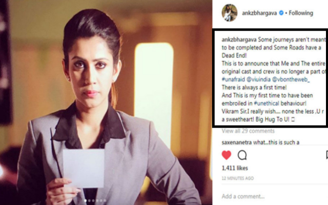 ये हैं मोहब्बतें में मुख्य किरदार निभा रहे रमन भल्ला यानी करण पटेल की पत्नी अंकिता भार्गव को हाल में विक्रम भट्ट की वेब सीरीज 'अनअफरेड' से बाहर का रास्ता दिखा दिया गया है। इस शो को अंकिता ने नवंबर में साइन किया था। बताया जा रहा है कि सिर्फ अंकिता को ही नहीं बल्कि शो के पूरे यूनिट को बाहर निकाल दिया गया है।