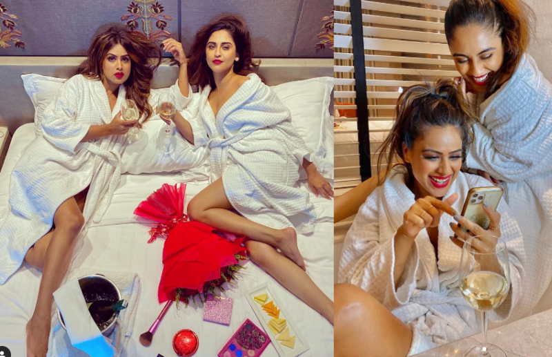 निया और क्रिस्टल ने इस फोटोशूट में बाथ रोब पहने हुए हैं। रेड लिपस्टिक, खुले बाल और हाथों में ग्लास, इस फोटोशूट को और भी आकर्षक बना रहे हैं। दोनों एक्ट्रेसेस का बिंदास अंदाज देखते ही बनता है। ऐसा पहली बार नहीं है कि दोनों ने साथ फोटोज शेयर किए हैं। इससे पहले भी कई बार वह साथ में फोटो शेयर कर फैंस का दिल जीत चुकी हैं।
