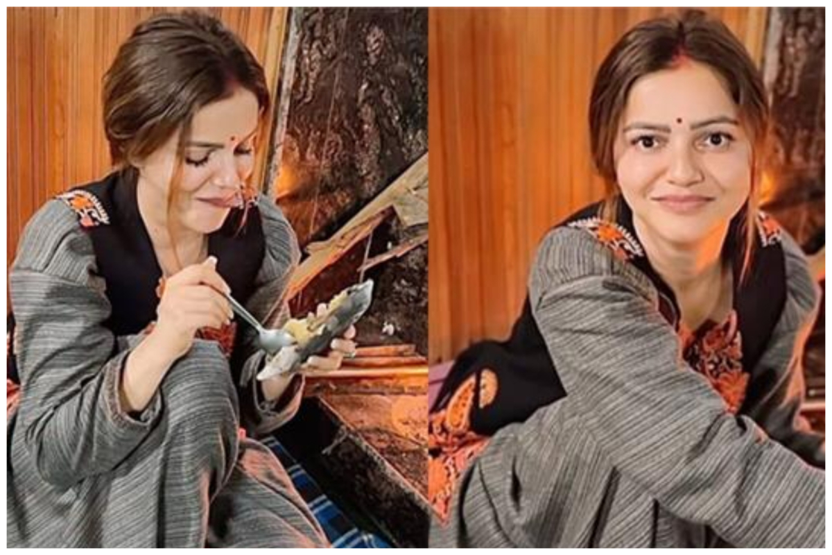 रुबीना दिलैक ने एक वीडियो शेयर किया है, जिसमें उन्हें पहाड़ी कपड़ों में चूल्हे का सामने बैठा देखा जा सकता है। वे चूल्हे पर कुछ पका रही हैं और आंच तेज करने के लिए चूल्हे पर फूंक मार रही हैं। इसके साथ ही वो कुछ खा रही हैं। इस वीडियो को शेयर करते हुए कैप्शन में एक्ट्रेस ने लिखा है- संडे विलेज लाइफ।