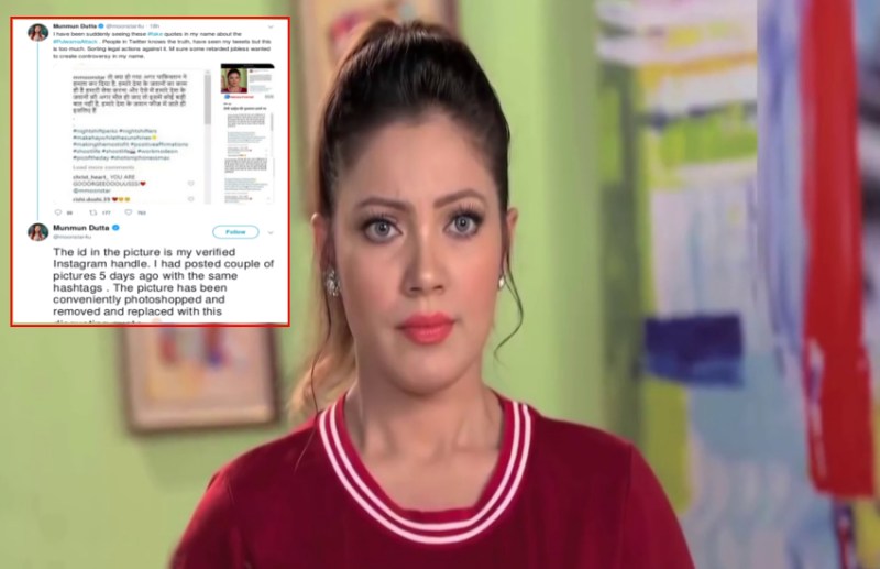 रिपोर्ट्स की मानें तो मुनमुन दत्ता (बबीता जी) ने ट्वीट कर कहा है, 'पुलवामा अटैक पर मेरे इस फेक कोट्स पर मेरी अचानक नजर पड़ी। ट्विटर पर लोग सच्चाई जानते हैं और मेरे ट्वीट्स भी उन्होंने देखे होंगे, लेकिन यह तो अति हो गई। मैं इनके खिलाफ लीगल ऐक्शन लेने की तैयारी कर रही हूं। यकीनन कुछ 'बेवकूफ' बेरोजगार लोग मेरे नाम से कॉन्ट्रोवर्सी क्रिएट करना चाह रहे होंगे।'