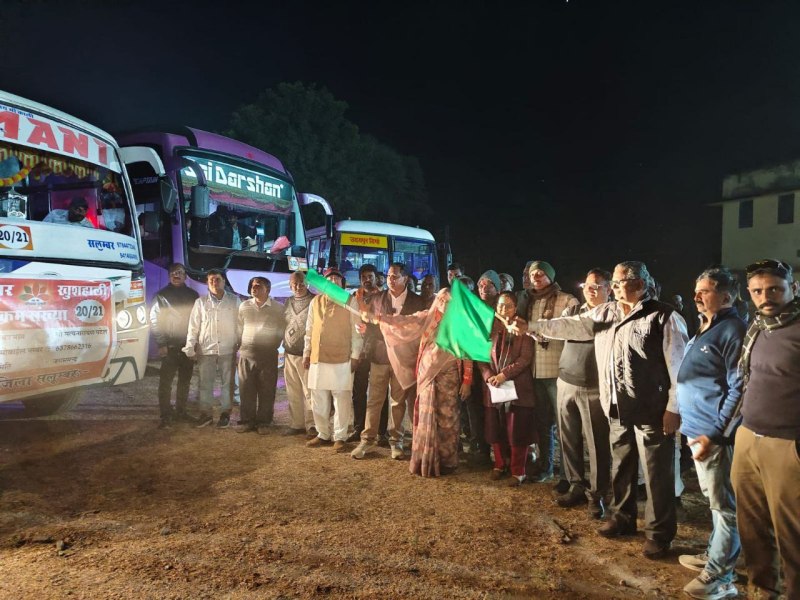 बसों को हरी झंडी दिखाकर रवाना करतेे हुए