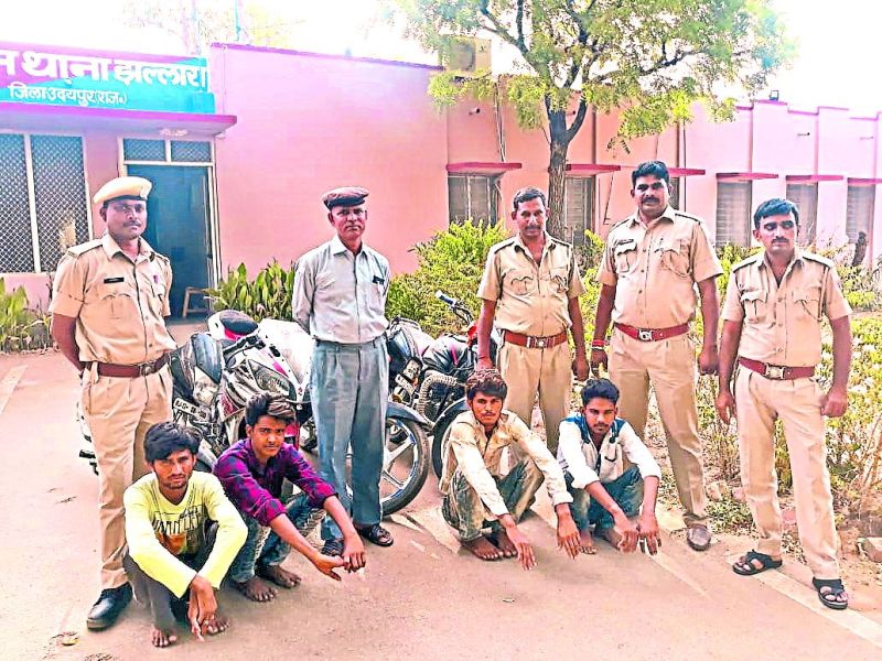 उदयपुर . झल्लारा थाना पुलिस ने अंतरराज्यीय दुपहिया वाहन चोर गैंग का पर्दाफाश कर चार आरोपितों को गिरफ्तार कर 4 बाइक बरामद की।