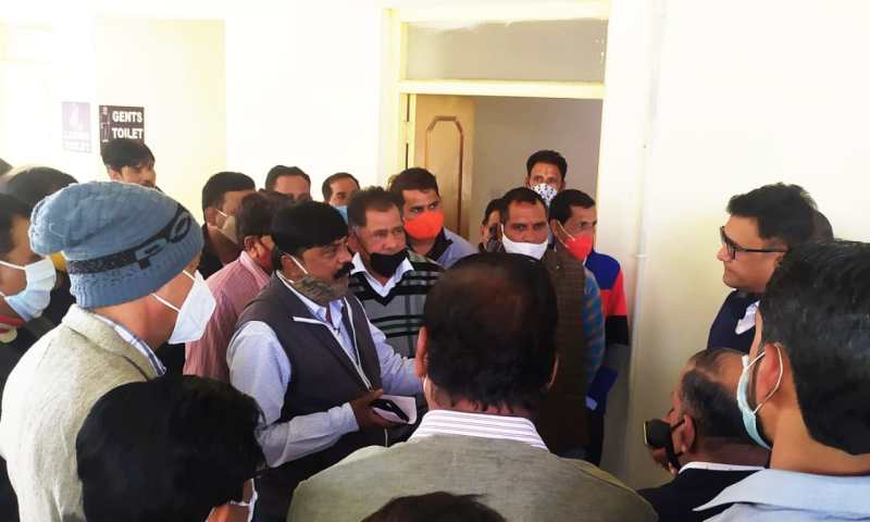 ऊर्जा विभाग के प्रमुख सचिव दिनेश कुमार के समक्ष अपनी मांगों से अवगत कराते श्रमिक नेता।