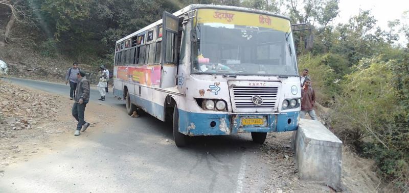 उदयपुर. झाड़ोल-कोटड़ा राष्ट्रीय मार्ग पर सोमघाटे पर सोमवार सुबह एक रोडवेज बस के अचानक ब्रेक फेल हो गए। लेकिन चालक की सूझबूझ से बस में सवार 100 यात्री बाल-बाल बच गए। चालक ने बस को दीवार से टकराकर रोक दी। गौरतलब है कि इस रूट पर लंबे समय से खटारा बसों का संचालन हो रहा है। ऐसे में आए दिन रास्ते में रोडवेज बस खराब हो रही है। पूर्व में भी कई बार दुर्घटना होते-होते बची, इसके बावजूद प्रशासन खटारा बसों के संचालन को लेकर गंभीर नहीं है।