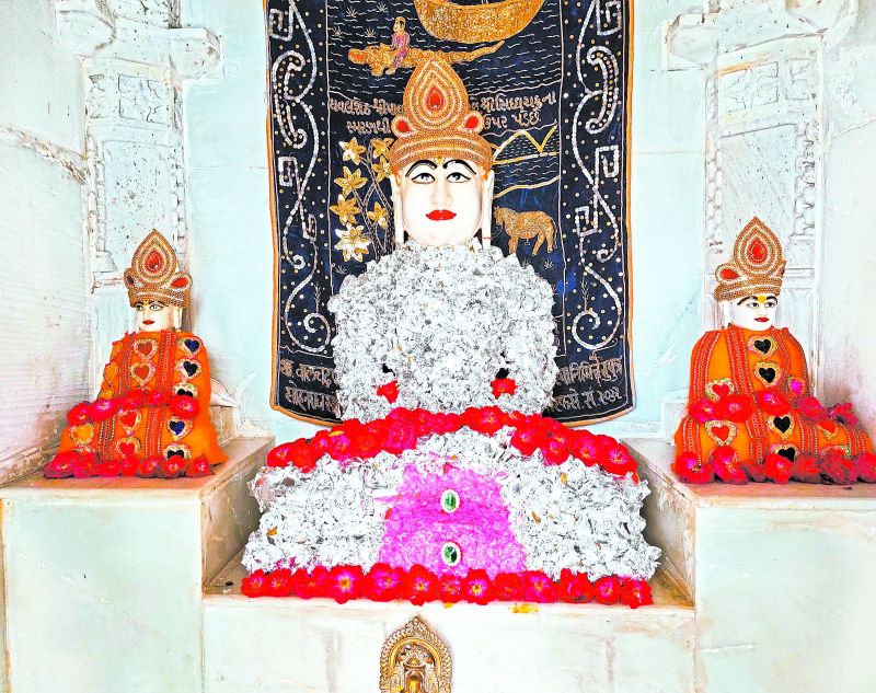 मेनार. वल्लभनगर उपखण्ड के जैन मंदिरों में इस समय जैन धर्म के आठ दिवसीय पर्व पर्युषण की आराधना की जा रही है। सभी जैन धार्मिक स्थलों में जैन समाज पर्युषण पर्व मना रहा है। मेनार कस्बे के श्री सुमतिनाथ जैन मंदिर में पर्युषण पर्व के तहत प्रतिमाओं का रोजाना अनोखा श्रंगार किया जा रहा है। पर्व के पांचवे दिन मंगलवार को सूरत से आए अरविंद कुमार जैन द्वारा प्रतिमाओं को विशेष आंगी धराकर भव्य श्रंगार किया गया। मन्दिर में विराजित सुमतिनाथ जी, नाकोड़ा भैरव, पद्मावती देवी, मणिभद्र स्वामी, शांतिनाथ भगवान, शीतल नाथ भगवान की प्रतिमाओं का चांदी के अर्क, गुलाब के फूलों से श्रंगार किया गया। इस पर्व में चित्तौड़ से मेनार पधारे स्वाध्यायजी द्वारा रोजाना प्रात: 7 बजे प्रार्थना एवं 9 बजे व्याख्यान एव शाम को प्रतिक्रमण का पाठ किया जा रहा है।