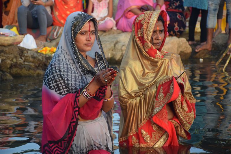 निर्जल रह की छठ मैया की पूजा डूबते हुए सूर्य को दिया अघ्र्य ...