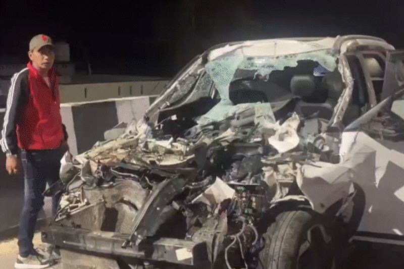उदयपुर। डबोक एयरपोर्ट के पास सोमवार रात करीब 11 बजे हुए हादसे में गुजरात के रियल स्टेट कारोबारी की मौत हो गई। दंपती महाकुंभ से लौट रहा था। उनकी तेज रफ्तार कार सड़क पर खड़े टैंकर के पीछे टकरा गई। व्यापारी की पत्नी गंभीर रूप से घायल हो गई।