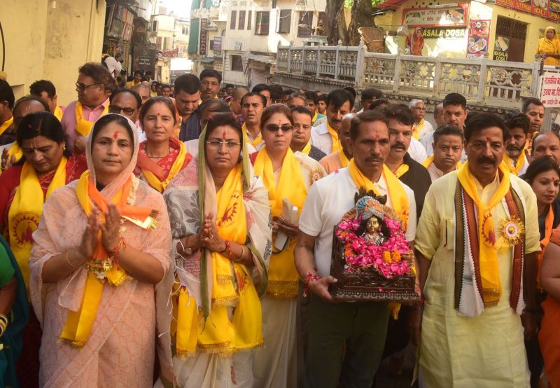 देवस्थान मंत्री रावत ने यात्रा की शुरुआत लड्डू गोपाल को हाथों में लेकर नंगे पैर पदयात्रा कर की। इसके बाद बारी-बारी से अन्य अन्य विशिष्टजन भगवान के बाल स्वरूप को लेकर चले। मार्ग में जगह-जगह शहरवासियों ने पुष्पवृष्टि कर यात्रा का स्वागत किया।