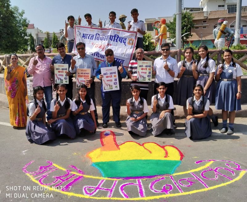 आरइएमसील के स्वतंत्र निदेशक डॉ. प्रदीप कुमावत के निर्देशन में गुरुवार को गवरी चौराहा पर आलोक संस्थान के विद्यार्थियों ने मतदाता जागरूकता अभियान का शुभारंभ किया। जमीन पर रंगोली बनाकर विद्यार्थियों ने आमजन को मतदान के लिए प्रेरित किया है। प्राचार्य शशांक टांक, प्रतीक कुमावत, महेश कुमावत, मीनाक्षी शर्मा, मनमोहन भटनागर, मनीष तिवारी एवं अन्य मौजूद थे।