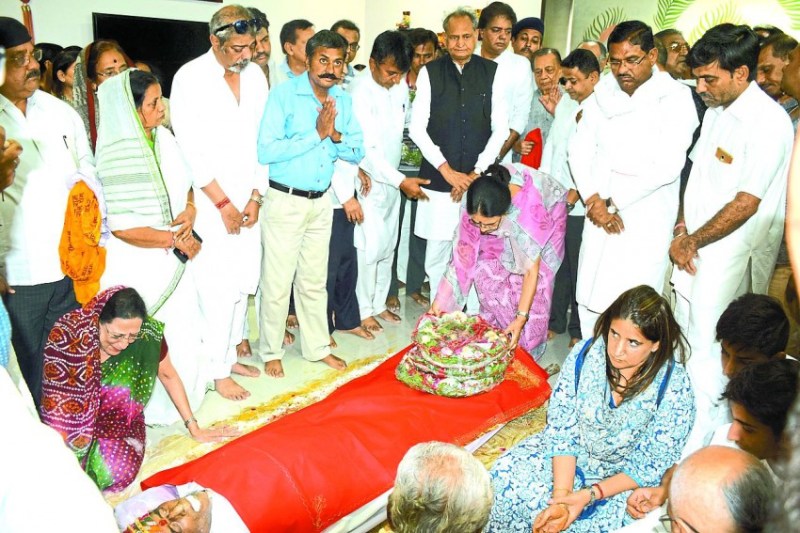 मुकेश हिंगड़ / उदयपुर . पूर्व मुख्यमंत्री मोहनलाल सुखाडिय़ा के बेटे दिलीप सुखाडिय़ा की अंतिम यात्रा में रविवार को बड़ी संख्या में कांग्रेसजनों ने हिस्सा लिया। अशोकनगर स्थित मोक्षधाम पर हुई अन्त्येष्टि में उनको बेटी कामायनी ने मुखाग्नि दी। इससे पूर्व दुर्गा नर्सरी रोड स्थित उनके निवास पर पूर्व मुख्यमंत्री अशोक गहलोत व गृहमंत्री गुलाबचंद कटारिया ने सुखाडिय़ा को पुष्पांजलि अर्पित की। गहलोत ने सुखाडिय़ा की पत्नी पूर्व शहर कांग्रेस अध्यक्ष नीलिमा सुखाडिय़ा और उनकी बेटी कामायनी को सांत्वना दी।