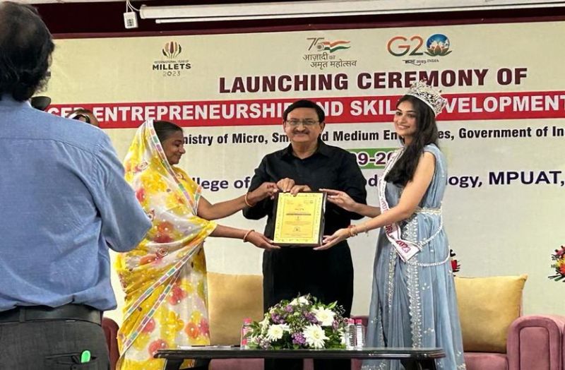 महाराणा प्रताप कृषि एवं प्रौद्योगिकी विश्वविद्यालय, उदयपुर के कुलपति डाॅ. अजीत कुमार कर्नाटक ने कहा कि सूक्ष्म, लघु व मध्यम उद्योग भारतीय अर्थव्यवस्था के मूल स्तंभ है। पिछड़े व गरीब क्षेत्र के 90 प्रतिशत लोगों को रोजगार मुहैया कराने वाली इन इकाईयों को प्रोत्साहन की आवश्यकता है। देश की जीडीपी इनका 6.1 प्रतिशत योगदान है तो सेवा क्षेत्र में 24.2 फीसदी उत्पादन में 45 प्रतिशत वहीं निर्यात में 40 प्रतिशत योगदान है। उन्होंने कहा कि जनजाति बहुल उदयपुर संभाग में सीताफल बहुतायत में होता है। महाराणा प्रताप के योद्धा इसी जनजाति क्षेत्र के थे और जंगली फल यानी सीताफल का उपयोग करते आए है। उन्होनें बताया सीताफल का गूदा आईसक्रीम व अन्य व्यंजन बनाने के काम आता है। कृषि वैज्ञानिक सीताफल के गूदे को लम्बे समय तक संरक्षित रखने संबन्धी शोध में जूटे है। डाॅ. कर्नाटक ने इस बात पर खुशी जाहिर की कि मिस इंडिया सुश्री नंदिनी गुप्ता ने महाविद्यालय के प्रयोगशाला प्रशिक्षण के बारे में गहन जानकारी ली और अपने स्तम्भ स्ड्यिूल में से समय निकालकर युवाओं का हौसला बढ़ाया।