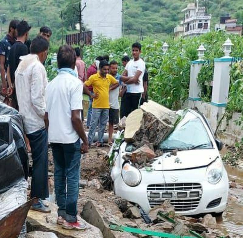 प्रतापनगर के पास दीवार ढही, दबी कार