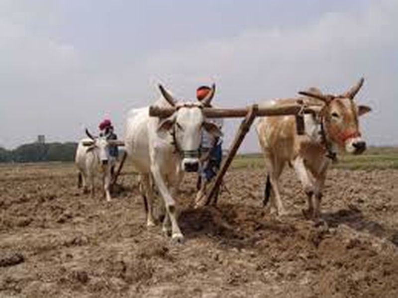 यहां पर किसानों के खिले चेहरे, हल और बैल लेकर चले खेत