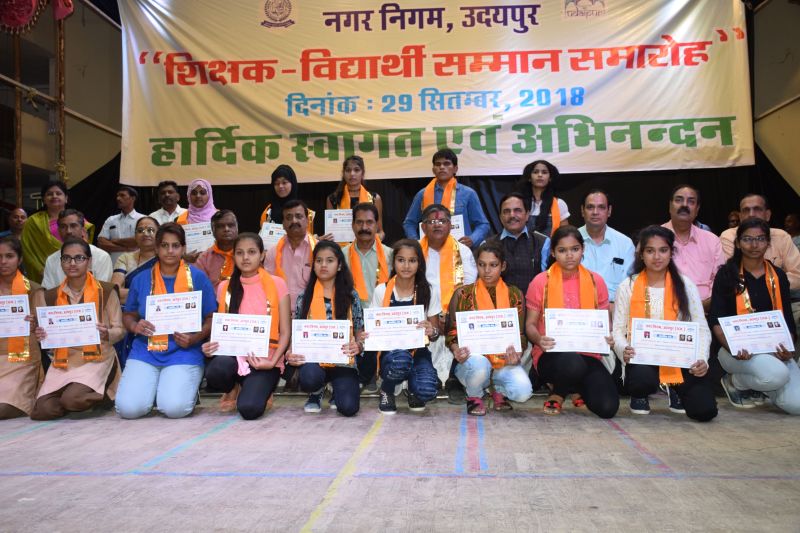 प्रमोद सोनी/उदयपुर.नगर निगम क्षेत्र की विभिन्न राजकीय विद्यालयों के 161 छात्र-छात्राओं का सम्मान किया गया। जिन्होंने कक्षा 10 व 12 में 75 प्रतिशत या उससे अधिक अंक अर्जित किये ऐसे होनहार विद्यार्थियों के साथ साथ प्रथम बार उत्कृष्ट परिणाम देने वाले शिक्षकों का नगर निगम सभागार में गृहमंत्री गुलाब चंद कटारिया व नगर निगम महापौर चंद्र सिंह कोठारी द्वारा 2100 रुपये का चेक व प्रमाण पत्र देकर सम्मानित किया। सांस्कृतिक समिति अध्यक्ष जगदीश मेनारिया ने बताया कि निगम द्वारा आयोजित इस कार्यक्रम में 161 होनहार छात्र-छात्राओं को इन छात्रों को इस पायदान पर पहुंचाने वाले 17 शिक्षकों का भी सम्मान किया गया। स्वागत उद्द्बोधन में महापौर चन्द्र सिंह कोठारी ने कहा कि नगर निगम प्रतिवर्ष यह सम्मान समारोह आयोजित करता है।इस वर्ष प्रथम बार छात्रों के साथ साथ छात्रों को इस योग्य बनाने वाले 17 शिक्षकों को भी सम्मानित किया है। मुख्य अतिथि गृहमंत्री कटारिया ने कहा कि सरकारी विद्यालयों में अधिकांश निर्धन या पढ़ाई में कमजोर विद्यार्थी ही अध्ययन करते है इनकी प्रतिभा को निखारने का कार्य जिन शिक्षक द्वारा किया जाता है वो भी उतने ही सम्मान के योग्य है। उन्होने कहाकि राजस्थान किसी समय देश में शिक्षा के क्षेत्र में 27 वे नंबर पर आता था लेकिन वर्तमान में यह दूसरे पायदान पर हैं राजस्थान को शिक्षा के क्षेत्र में दूसरे पायदान पर लाने में ऐसे ही सम्मान समारोह का मुख्य योगदान है।