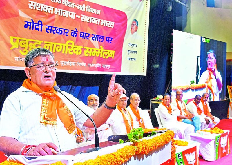 कटारिया ने कहा कि मोदी ने भ्रष्टाचार करने वालों पर लगाम लगाई है। उदयपुर में एसपी रहे अजयपाल लाम्बा ने जोधपुर में आईएएएस निर्मला मीणा को भ्रष्टाचार के आरोप में गिरफ्तार किया। कार्यक्रम की अध्यक्षता करते हुए कोटा विश्वविद्यालय के पूर्व कुलपति एम.एल. कालरा ने कहा कि कूटनीति और राजनीति के साथ विश्व मंच पर भारत का स्वाभिमान बढ़ा है। प्रारम्भ में शहर जिलाध्यक्ष दिनेश भट्ट व कार्यक्रम संयोजक प्रमोद सामर ने सभी का स्वागत किया। मंच पर भाजपा प्रदेश उपाध्यक्ष चुन्नीलाल गरासिया, महापौर चन्द्रसिंह कोठारी, यूआईटी अध्यक्ष रविन्द्र श्रीमाली, उदयपुर ग्रामीण विधायक फूलसिंह मीणा, सलूम्बर विधायक अमृतलाल मीणा आदि मंचासीन थे।